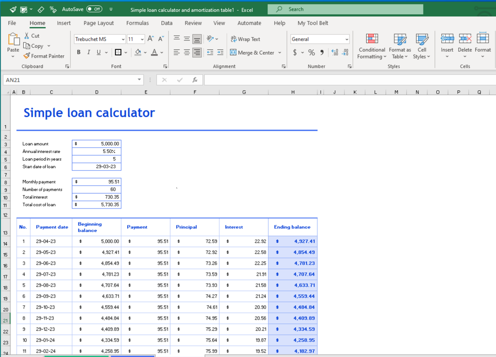 In the first video of the series, I used a template produced by Microsoft: the Simple Loan Calculator. I took this basic template and rebuild it from scratch, showing you how to apply best practices to make it more functional, visually appealing, and user-friendly.